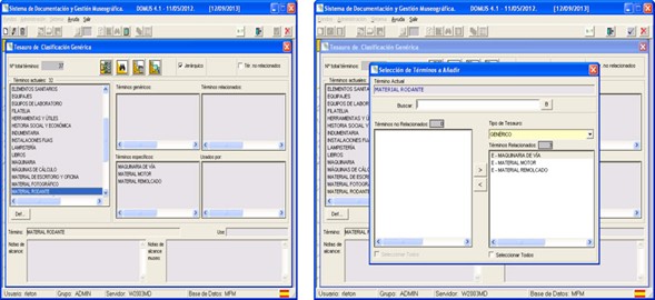 - En el ejemplo observamos las clasificaciones genéricas establecidas en el Museo del Ferrocarril. En el caso señalado, Materia Rodante, existen como términos específicos y términos relacionados, Maquinaria de Vía, Material Motor y Material Remolcado.
