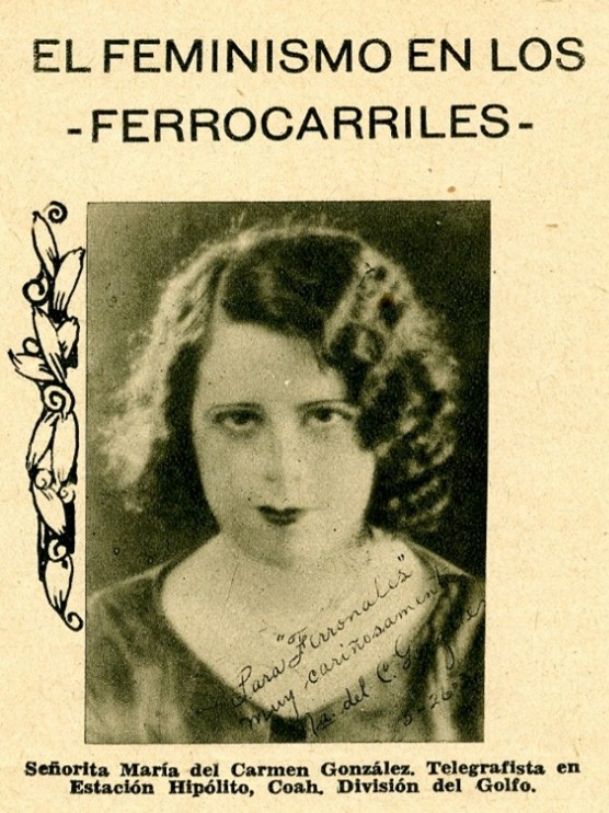 La sección fue diseñada para acoger información biográfica e imágenes de las mujeres que trabajaban en las distintas áreas de los Nacionales. La primera vez que se publicó fue en febrero de 1932 y en ella sólo se incluyó la imagen de ocho taquígrafas que prestaban sus servicios en las Oficinas de Colonia y Departamento de Express.[21] Fue hasta julio de ese mismo año que apareció en la sección el nombre de María del Carmen González, telegrafista en la Estación Hipólito, Coah., quien había ingresado en octubre de 1921, en la División Monterrey al Golfo.