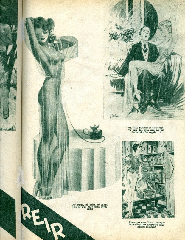 Por otro lado, contrario a lo expresado, la revista también dio espacio a opiniones de hombres y mujeres que abogaban por que éstas últimas permanecerán impasibles dentro del hogar o incluso publicó tiras cómicas como fue la denominada Para reír donde comenzó a ponerse a la mujer como objeto sexual.