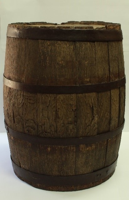 Objeto en forma de barril donde se transportaba el agua potable para las cuadrillas de vía que salían de campamento. |